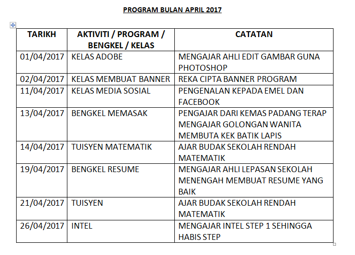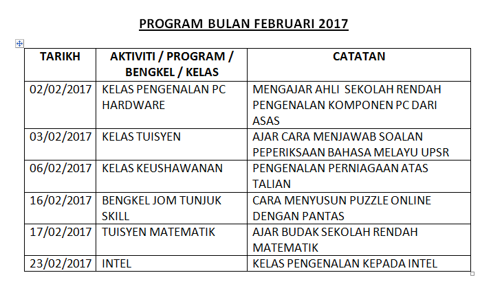 JADUAL DAN AKTIVITI JANUARI 2017 TARIKH AKTIVITI / LATIHAN / BENGKEL/ PROGRAM CATATAN 02/01/2017 Kelas Etika Komputer Pelajar Sekolah Rendah 04/01/2017 – Mesyuarat Kluster Padang Terap – Kelas […]